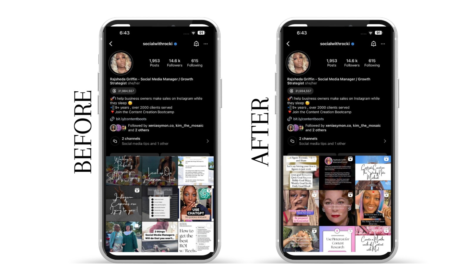Rajsheda Griffin is active as a social media manager and social media coach. We supported her by handling her clients social media and content creation.